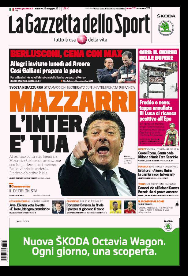 GAZZETTA MAZZARRI – Sulla Gazzetta dello Sport si parla di Mazzarri che è diventato il nuovo allenatore dell’Inter.