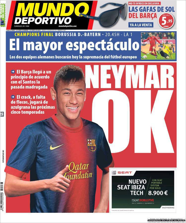 MUNDO DEPORTIVO NEYMAR – Il quotidiano Mundo Deportivo parla invece di un accordo tra Barcellona e Santos per Neymar.