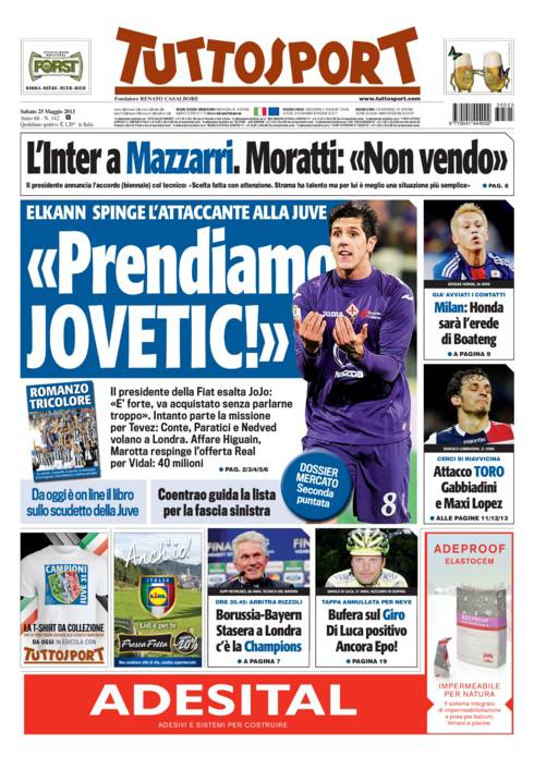 TUTTOSPORT JOVETIC – Su Tuttosport si parla delle dichiarazioni di Elkann che vuole prendere Jovetic.