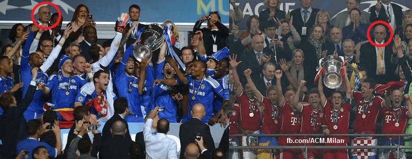 FOTO CHAMPIONS LEAGUE GALLIANI – L’espressione è quella di chi vorrebbe essere a festeggiare e non a guardare gli altri alzare la coppa. Adriano Galliani, anche quest’anno, era nella tribuna d’onore dello stadio di Wembley per assistere alla finale di Champions League. E’ eloquente l’immagine che ritrae l’ad rossonero, anche quest’anno costretto a guardare altre squadre festeggiare il trionfo europeo. Come già era accaduto con il Chelsea, come ritrae la foto a sinistra, è accaduta la stessa cosa nell’immagine a destra, catturata ieri durante la premiazione del Bayern Monaco. 6 anni senza coppa campioni per il Milan sono davvero tanti e Galliani lo sa…