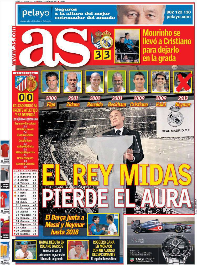 AS PEREZ – Sul quotidiano As si parla di Perez che non ha potuto anticipare il Barcellona per Neymar.