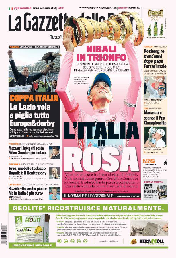 GAZZETTA COPPA ITALIA – Sulla Gazzetta dello Sport si parla della Lazio che vince il derby di Coppa Italia contro la Roma.