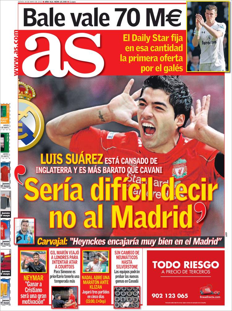 AS SUAREZ – Anche sul quotidiano As si parla del futuro di Suarez che è vicino al Real Madrid.