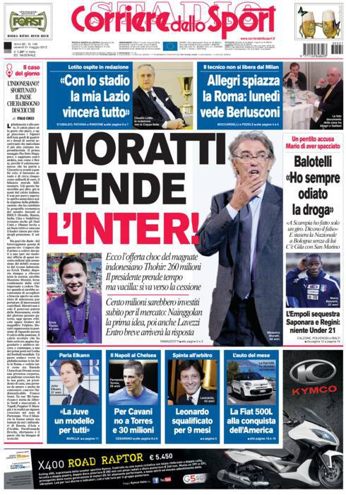 CORRIERE MORATTI – Sul Corriere dello Sport si parla di Moratti che potrebbe cedere alla proposta di Thoir di vendere l’Inter.