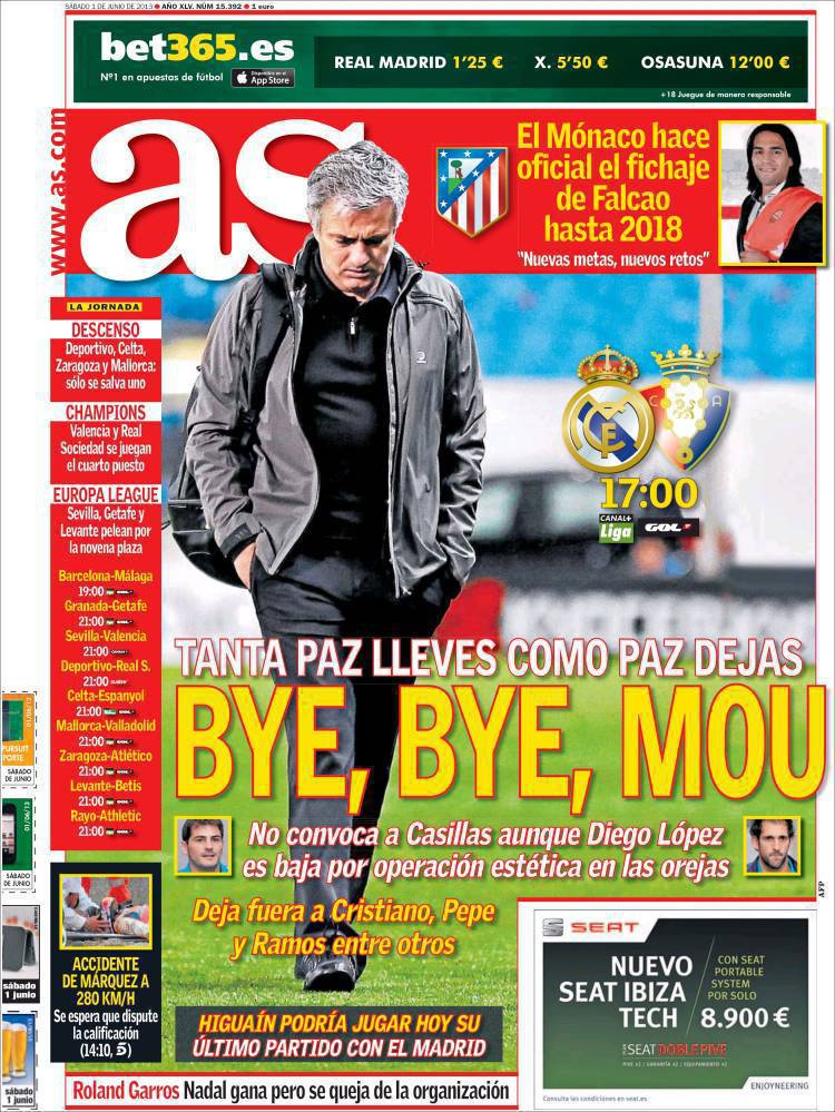 AS MOURINHO – Il quotidiano As saluta Mourinho in inglese visto che lo Special One tornerà al Chelsea.