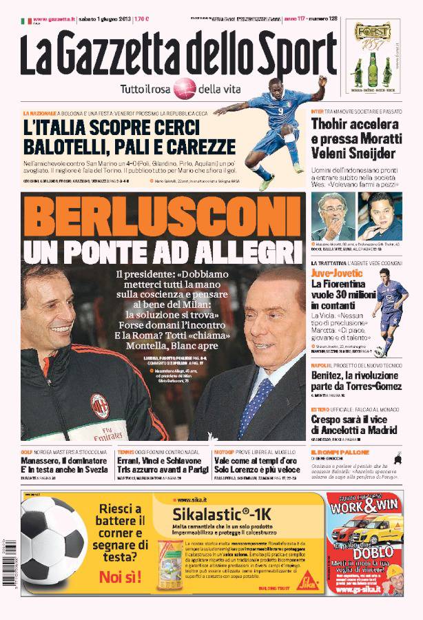 GAZZETTA BERLUSCONI – Sulla Gazzetta dello Sport si parla del futuro di Massimiliano Allegri che si deciderà domenica.
