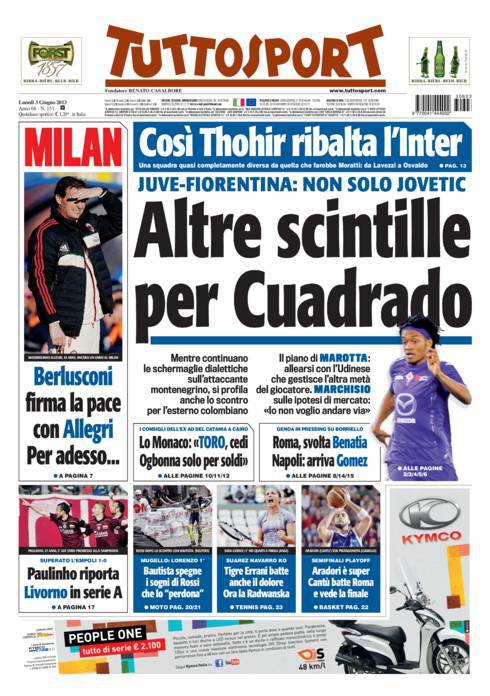 TUTTOSPORT JUVENTUS FIORENTINA – Tra Juventus e Fiorentina sono pronte altre scintille per Cuadrado, esterno a metà tra la Viola e l’Udinese.