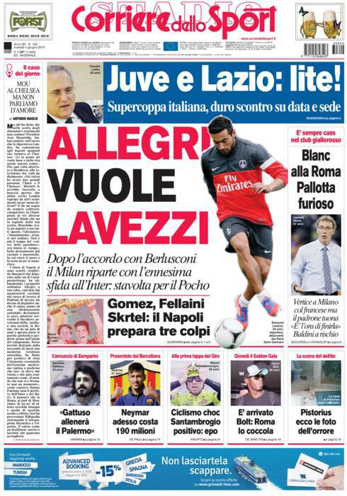 CORRIERE LAVEZZI – Allegri, tecnico del Milan, vuole puntare sul Pocho Lavezzi.