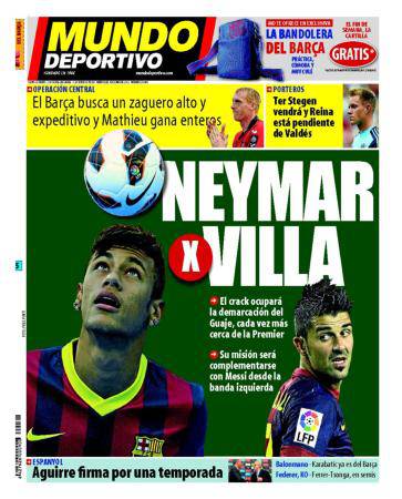 MUNDO DEPORTIVO NEYMAR – Sul quotidiano Mundo Deportivo si parla di Neymar che prenderà il posto di David Villa.