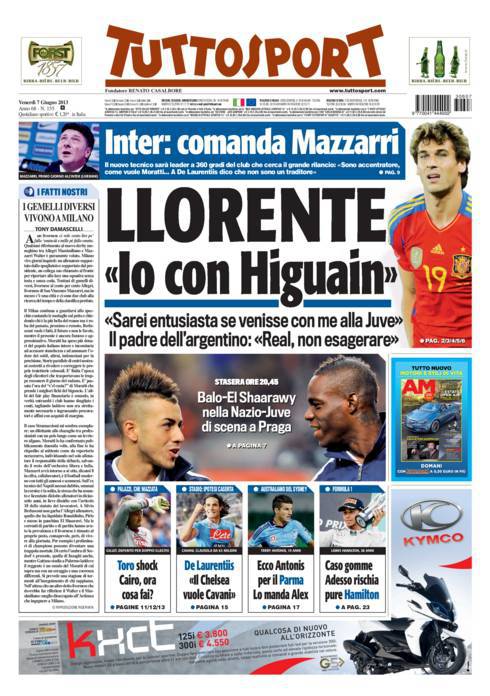 TUTTOSPORT LLORENTE – Su Tuttosport si parla di Llorente che rivela di voler giocare con Higuain nella Juventus.