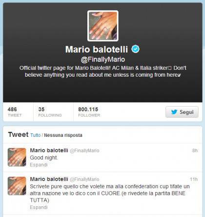 FOTO BALOTELLI TWITTER – Mario Balotelli è finito ancora una volta nell’occhio del ciclone. In questo caso, a scatenare il nuovo putiferio ai danni dell’ex attaccante del Manchester City, è stata l’espulsione da lui rimediata nella sfida valida per le qualificazioni ai prossimi mondiali tra Italia e Repubblica Ceca. Balotelli è stato cacciato per doppia ammonizione e, al termine della partita, i giornalisti lo hanno descritto molto arrabbiato per quanto accaduto. Il ragazzo non nasconde le sue emozioni nemmeno su Twitter dove ha risposto alle numerose critiche ricevute: “Scrivete pure quello che volete ma alla confederation cup tifate un’altra nazione ve lo dico con il CUORE.(e rivedete la partita BENE TUTTA)”. La notte porta consiglio quindi questa mattina, sul profilo ufficiale di SuperMario, appareun altro messaggio, questa volta di scuse: “Buon giorno.. Ieri la mia reazione non è stata giusta ,chiedo scusa.. SCUSA.. Alla mia squadra .. Devo imparare… Ancora”.