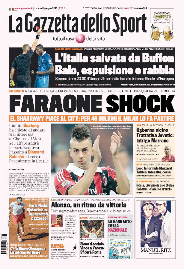 GAZZETTA EL SHAARAWY – Il City prepara l’assalto a El Shaarawy. Per 40 milioni di euro può partire.