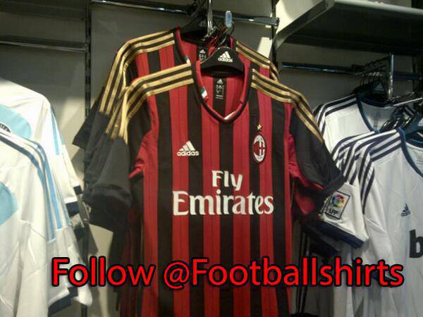 FOTO NUOVA MAGLIA MILAN 2013-2014 – E’ spuntata in rete una nuova foto della casacca Milan 2013-2014. La nuova divisa home verrà presentata ufficialmente solo ai primi di luglio, forse in occasione del raduno a Milanello dell’8, ma ormai da settimane circolano sul web le foto della nuova divisa. L’ultima che vi mostriamo in questa notizia conferma le varie indiscrezioni: strisce piuttosto strette, la presenza del richiamo al tricolore, un colletto particolare a V e l’utilizzo dell’oro, così come per la terza divisa che ha fatto un po’ storcere il naso.