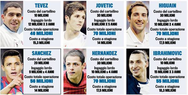 Mercato News Juventus- Sei nomi per l’attacco della Juventus. Non potranno arrivare tutti, ma un paio di loro potrebbero veramente vestire la maglia bianconera. Ibrahimovic, attualmente al Psg, viene valutato circa 10 milioni dal suo club di appartenenza, ed è per questo che il vero ostacolo alla trattativa è l’ingaggio: lo svedese guadagna infatti 10 milioni netti l’anno. Attenzione anche a Hernandez, il messicano potrebbe lasciare il Manchester United nel caso in cui dovesse arrivare un’offerta di circa 30 milioni. Il Chiciarito percepisce circa 7 milioni l’anno. In Italia vorrebbe invece tornare Alexis Sanchez: l’ex Udinese, viene valutato 20 milioni, e prendelo non è impossibile, anzi… I tre nomi più caldi sono per quelli di Jovetic, Higuain e Tevez. L’attaccante della Fiorentina costa 30 milioni, ma ha uno stipendio abbastanza basso (4 milioni). Al contrario l’argentino del Real Madrid guadagna 7 milioni l’anno e costa circa 30 milioni. Poi c’è Tevez, sul quale è però piombato il Milan…