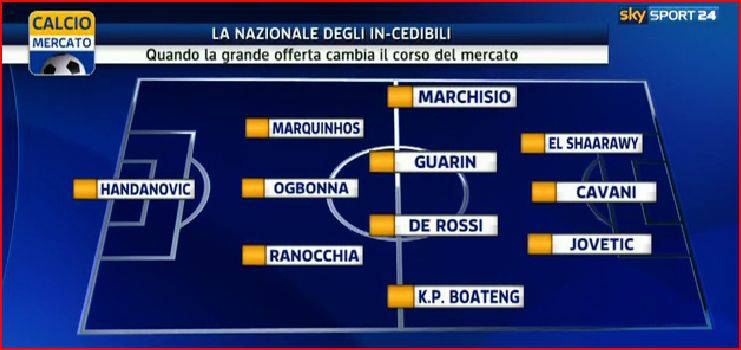 FOTO TOP 11 GRANDI EX INCEDIBILI JUVENTUS MILAN INTER – Quante volte la parola “incedibile” viene utilizzata anche a sproposito nel calciomercato? Non ultimo il dietrofront di Adriano Galliani che, da un giorno all’altro, si è trovato a dover quasi mettere sul mercato Stephan El Shaarawy, talento classe 1992 della squadra rossonera. La redazione di Sky Sport 24 ha voluto realizzare una top 11 dei calciatori dichiarati incedibili dalla società, ma comunque sul mercato, vista l’alta possibilità di cessione. Non mancano nomi illustri di calciatori appartenenti a Juventus, Milan ed Inter.