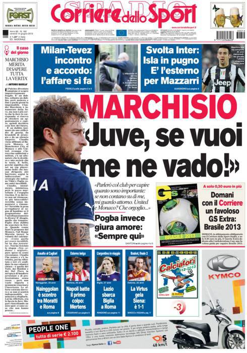 CORRIERE JUVENTUS – Sul Corriere dello Sport parla Marchisio che chiede chiarezza alla Juventus.