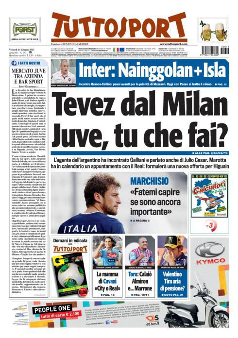 TUTTOSPORT TEVEZ MILAN – Su Tuttosport si parla di Tevez che è vicino al Milan. La Juventus dovrà muoversi per l’attaccante.