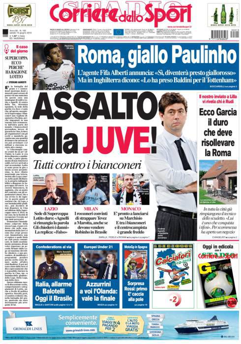 CORRIERE JUVENTUS – Giorni difficili per i bianconeri sia sul mercato sia per la questione legata alla Supercoppa.