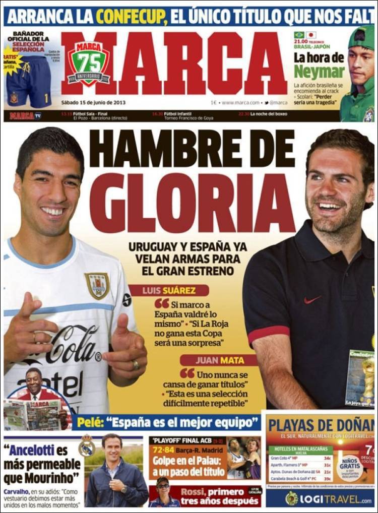 MARCA URUGUAY SPAGNA – Sul quotidiano Marca vengono riportate le dichiarazioni di Suarez e Mata sulla Confederations Cup.
