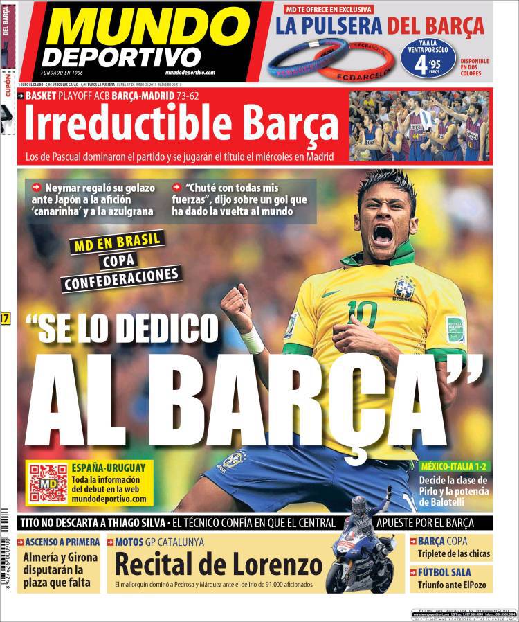 RASSEGNA STAMPA MUNDO DEPORTIVO – Neymar, autore di uno splendido gol con la maglia del Brasile contro il Giappone, ha voluto dedicara la sua prodezza alla sua nuova squadra, il Barcellona dove formerà una coppia da sogno con Lionel Messi.