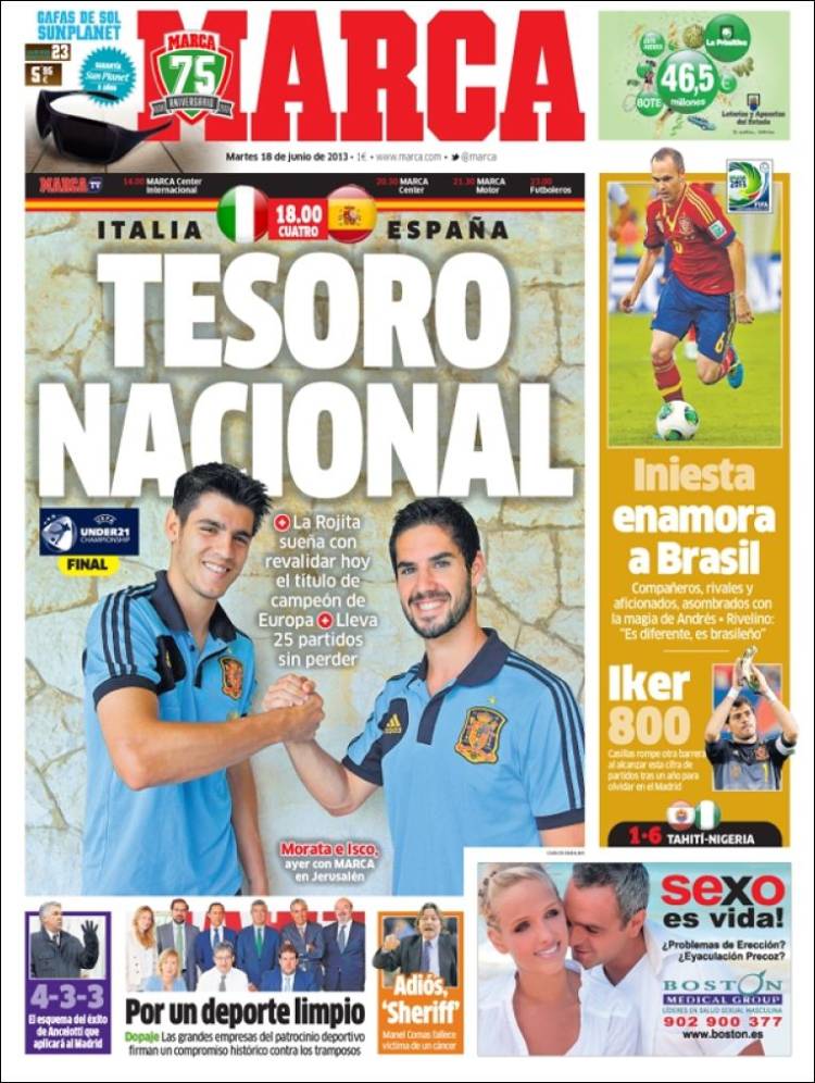 MARCA SPAGNA – Anche in Spagna attendono con ansia la finale dell’Europeo Under 21 tra Spagna e Italia.
