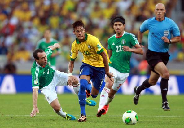 CONFEDERATIONS CUP BRASILE MESSICO NEYMAR – Gara non bellissima tra Brasile e Messico, ma la serata è stata accesa da due lampi abbaglianti del solito Neymar. Sì, sempre lui, ancora una volta migliore in campo. Nemmeno dieci minuti e il nuovo crack del Barcellona fa subito capire che aria tira ai messicani, l’ex Santos scaglia in rete al volo la respinta della retroguardia e mette a segno un gol da cineteca. Ancora Brasile, Alves impegna Corona con un lob, poi ci prova Paulinho. Qualche brivido per i verdeoro, Neymar si fa vedere anche in difesa, bruttissima l’entrata su Dos Santos. Cresconono i messicani, ma non arrivano pericoli particolari dalle parti di Julio Cesar. Si conclude un primo tempo non esaltante, in avvio di ripresa Thiago Silva si vede annullare un gol per fuorigioco. E’ sempre Neymar protagonista, uomo ovunque, in pieno recupero fa secchi due avversari e serve Jo per il più comodo dei gol. Finisce 2-0. Applausi a scena aperta per il numero 10 verdeoro.