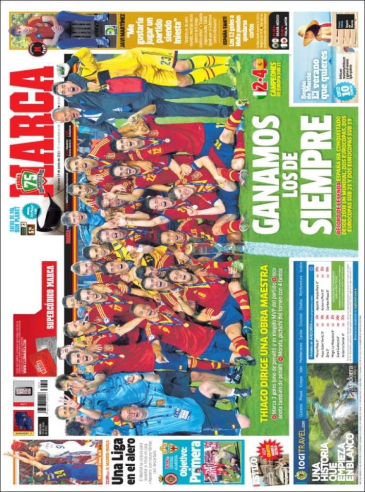 MARCA SPAGNA – L’Under 21 della Spagna vince l’Europeo battendo quattro a due in finale l’Italia di Mangia.