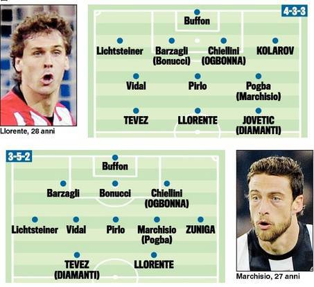 FOTO JUVENTUS FORMAZIONI 2013-2014 3-5-2 4-3-3 – Senza un attimo di sosta, la Juventus corre sul mercato per aggiudicarsi i migliori calciatori. Lo scatto dell’Arsenal per Higuain non ha per nulla bloccato le idee della Juventus, ferma nel perseguire gli obiettivi Jovetic e Tevez, primi nelle mire bianconere. La redazione di Tuttosport, nel numero stamane in edicola, ha voluto presentare due idee di formazione che potremmo vedere il prossimo anno in campo per i bianconeri. Un 3-5-2, ereditato da questa stagione, ed un 4-3-3, studiato ad hoc per l’Europa.