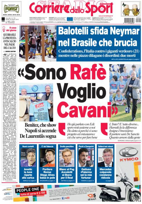 CORRIERE CAVANI – Sul Corriere dello Sport parla Benitez che ha dichiarato di voler trattenere Cavani.