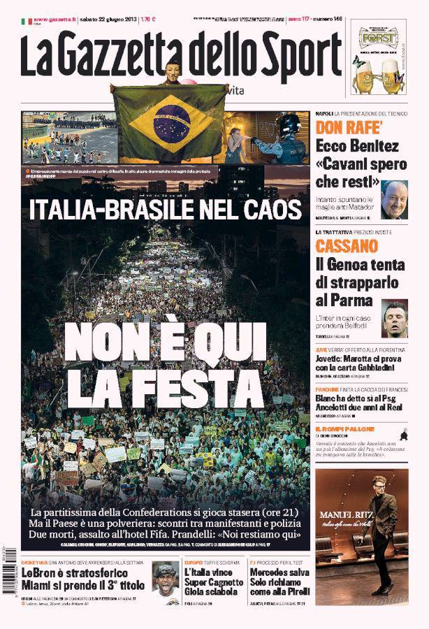 GAZZETTA ITALIA BRASILE – Questa sera si giocherà Brasile-Italia ma in Brasile continua la protesta del popolo.