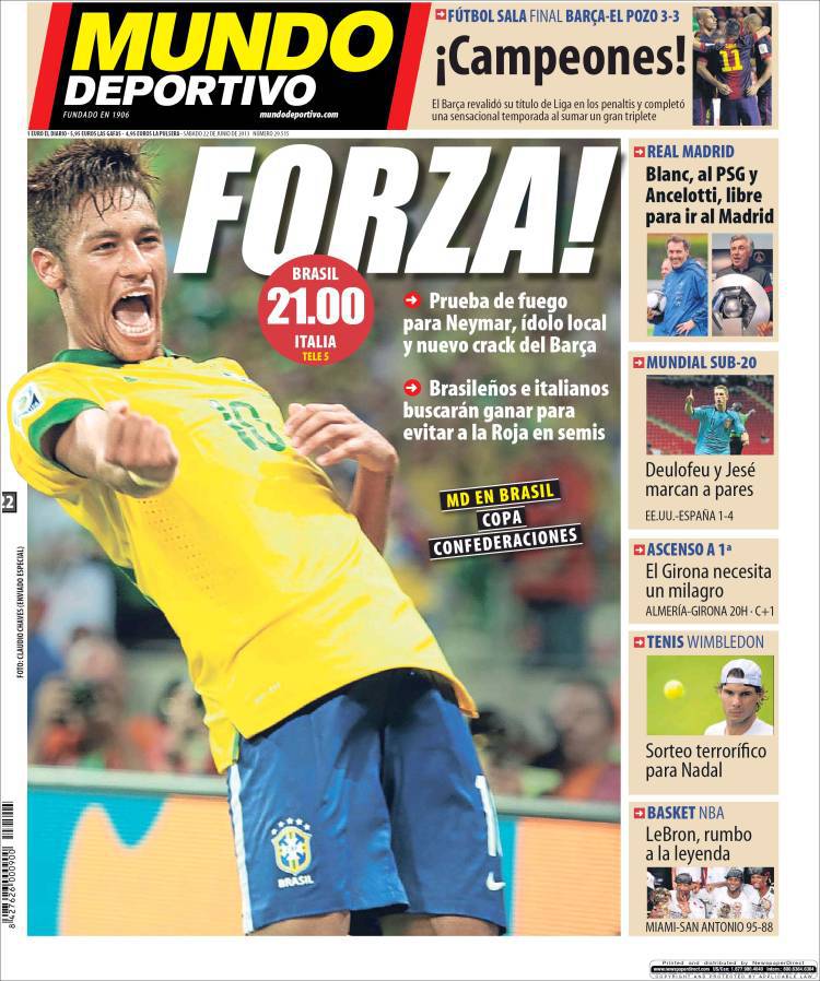 MUNDO DEPORTIVO NEYMAR – Sul quotidiano Mundo Deportivo si parla di Neymar che dovrà affrontare l’Italia con il suo Brasile.