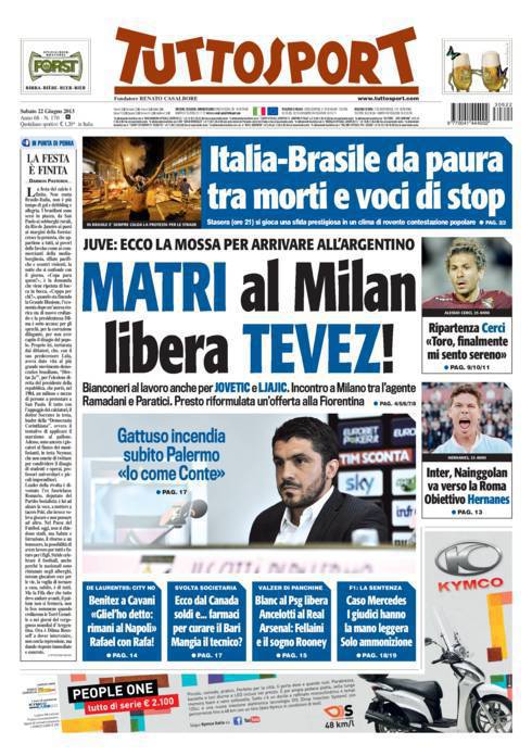 TUTTOSPORT MATRI MILAN – Il Milan potrebbe ricevere Matri dalla Juventus con Tevez in bianconero.