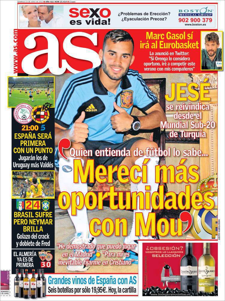RASSEGNA STAMPA AS – Jesè Rodriguez, attaccante del Real Madrid, è pronto a dimostrare il suo valore al Mondiale Under 20 che si disputa in Turchia. “Avrei meritato un’oppurtunità in più con Mourinho. Ho dimostrato di poter giocare nel Real Madrid”.