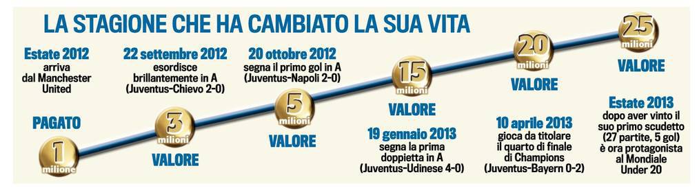 Mercato News Pogba Juventus- Paul Pogba è i futuro. Su di lui Conte punta tantissimo. E anche la Juventus, che infatti non lo vuole cedere. Il centrocampista francese è arrivato meno di una anno fa dal Manchester United per un milione di euro, e nel giro di 12 mesi ha incrementato il suo valore in maniera impressionante: dopo il gol nello scontro diretto contro il Napoli (20 ottobre 2012), il suo cartellino valeva già 5 milioni, ma quando all’inizio del 2013 (19 gennaio) ha realizzato quei due splendidi gol all’Udinese era già valutato non meno di 15 milioni. Ora, dopo aver vinto da protagoista il suo primo scudetto, ed essere la colonna portante della Francia ai Mondiali Under 20, vale già 25 milioni di euro…Pensate quanto può vale fra altri 12 mesi.