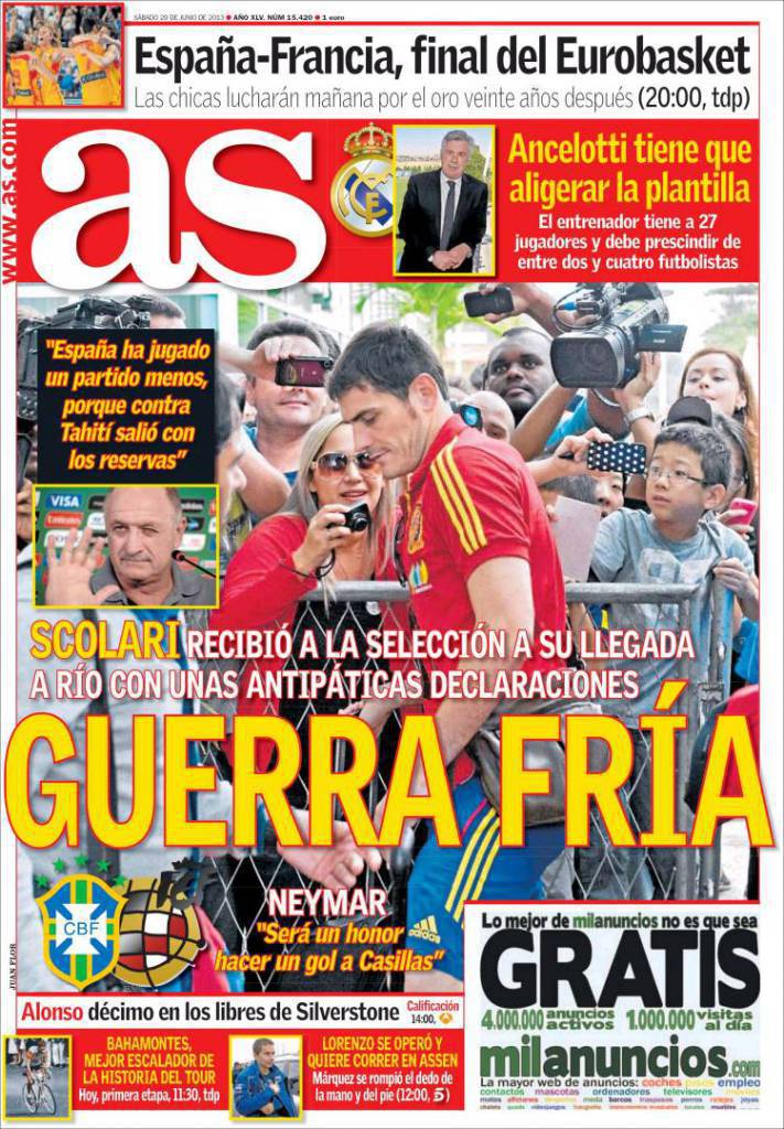 AS SPAGNA – Non sono piaciuti agli spagnoli le dichiarazioni di Scolari che ha criticato la selezione iberica.