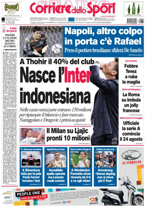 CORRIERE INTER – Sul Corriere dello Sport si parla dell’Inter che diventerà indonesiana visto che il 40% delle azioni saranno di Thohir.