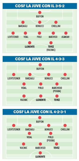 FOTO JUVENTUS TEVEZ CONTE 3-5-2 4-2-3-1 4-3-3 – Dopo l’entusiasmo iniziale dettato dall’arrivo in bianconero di Carlitos Tevez, è il momento di ragionare su quello che sarà l’utilizzo del campione argentino nella formazione bianconera. Il nuovo numero 10 della Juventus, secondo quanto svelato stamani da Tuttosport, potrebbe ben inserirsi in addirittura 3 moduli studiati ad hoc da Conte per farlo inserire nella formazione bianconera. Il 3-5-2, ereditato dalle ultime due stagioni vincenti, dove Carlitos andrebbe a ricoprire il ruolo di rifinitore accanto a Llorentee le idee europee di 4-2-3-1 e 4-3-3, con Tevez spostato sull’esterno. Sarà essenziale comprendere come la squadra riuscirà a reagire ed a innestarsi con questi nuovi schieramenti tattici.