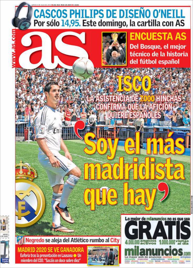 AS ISCO – Sette mila tifosi alla presentazione di Isco come nuovo giocatore del Real Madrid.