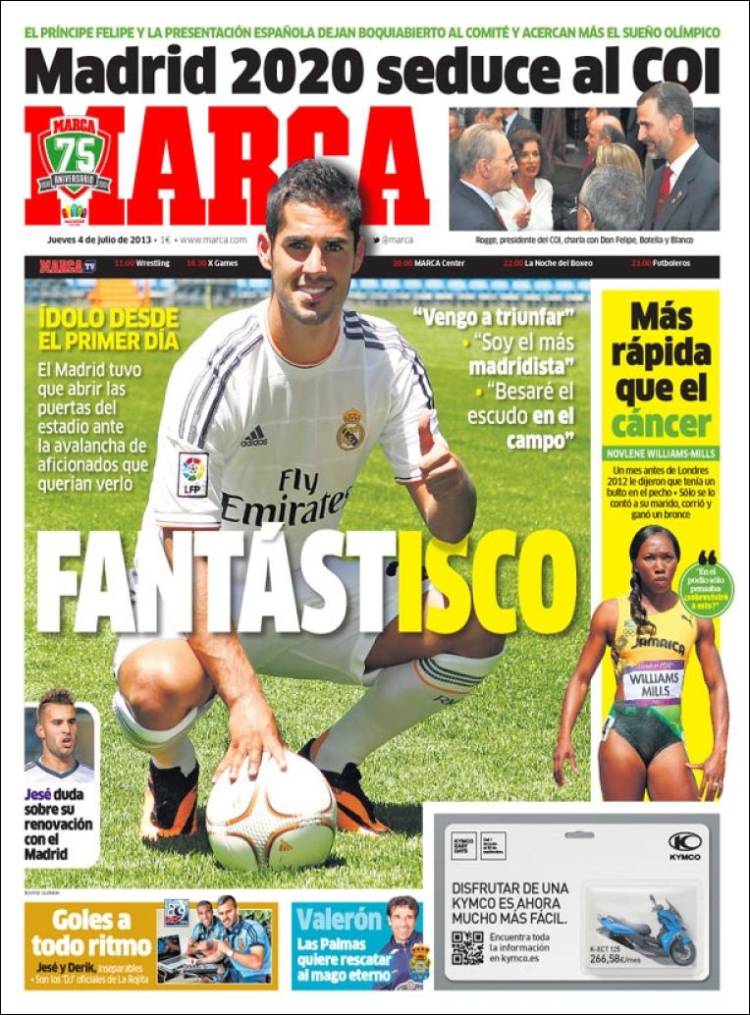 MARCA ISCO – Ieri è stato presentato Isco come nuovo giocatore del Real Madrid. Il titolo è su di lui.