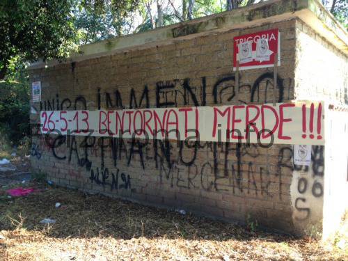 ROMA STRISCIONE SHOCK – E’ un’accoglienza shock quella riservata dai tifosi della Roma ai propri “beniamini”. In occasione del raduno di stamane a Trigoria i supporters giallorossi hanno accolto i calciatori della Roma con lo striscione “Bentornati merde”, scritta eloquente che non ha bisogno di altre delucidazioni.