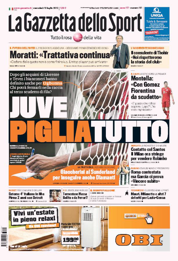 GAZZETTA JUVENTUS – Dopo Tevez e Llorente la Juventus prende anche Ogbonna dal Torino.