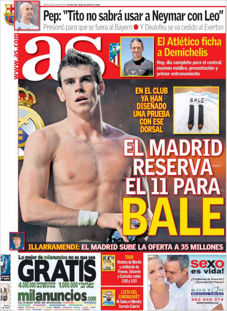 AS REAL MADRID – Sul quotidiano As si parla di Bale, il Real Madrid riserva per il gallese la maglia numero 11.