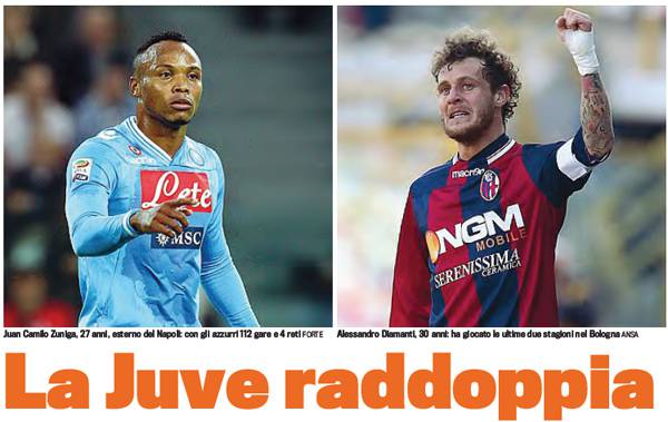 CALCIOMERCATO JUVENTUS MAROTTA DOPPIO COLPO – Antonio Conte non è felice per l’addio di Giaccherini. L’esterno della Juventus e della Nazionale italiana volerà in Inghilterra, nel Sunderland, dove guadagnerà circa 2 milioni di euro netti a stagione. Alla Juventus andranno 8 milioni di euro. Ora i bianconeri tenteranno un doppio colpo importante, Conte vuole Zuniga per blindare la fascia sinistra e Diamanti per dare qualità all’attacco. Un doppio colpo possibile solo con altre cessioni, i bianconeri ne vogliono cedere altri tre, tra cui uno o due attaccanti. Solo allora si potrà dare il via libera al doppio acquisto.