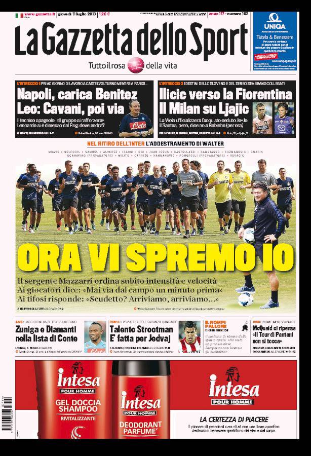 GAZZETTA MAZZARRI – Walter Mazzarri sta facendo sudare l’Inter nel ritiro pre-campionato.