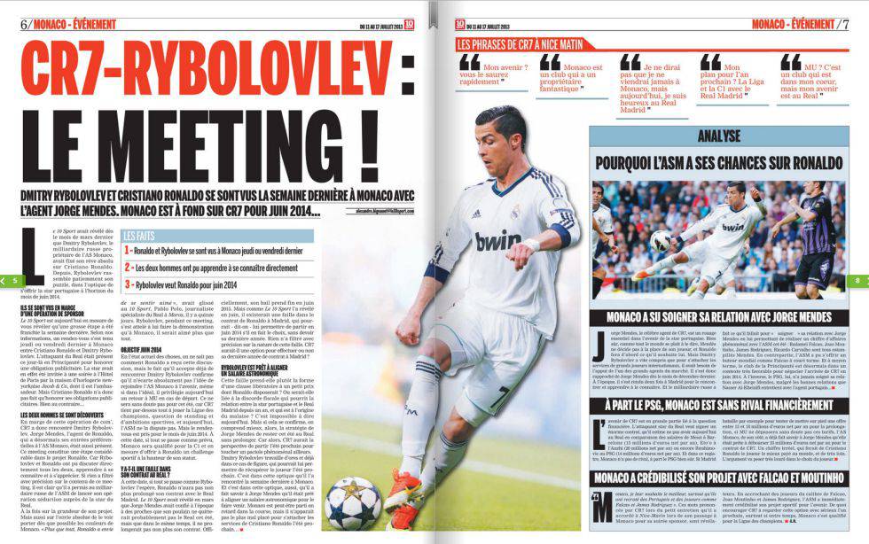 CALCIOMERCATO MONACO – E’ clamorosa l’indiscrezione raccolta dal quotidiano francese Le10Sport. Secondo quanto scrivono i colleghi transalpini il noto magnate russo patron del Monaco, Dmitry Rybolovlev, ha incontrato la scorsa settimana Cristiano Ronaldo. Sul tavolo una proposta scioccante, che lo stesso quotidiano definisce astronomica, per convincere CR7 al clamoroso cambio di casacca. Un nuovo rumor impressionante accostato al club monegasco, che non intende fermarsi dopo i vari acquisti, fra gli altri, di Falcao, Moutinho e James Rodriguez: con CR7 dove potrebbero arrivare i biancorossi?