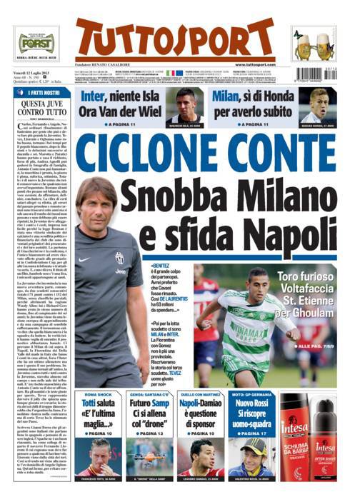 TUTTOSPORT INTER – Tuttosport parla anche dell’affare Isla che sembra sfumato. L’Inter vira su Van der Wiel.