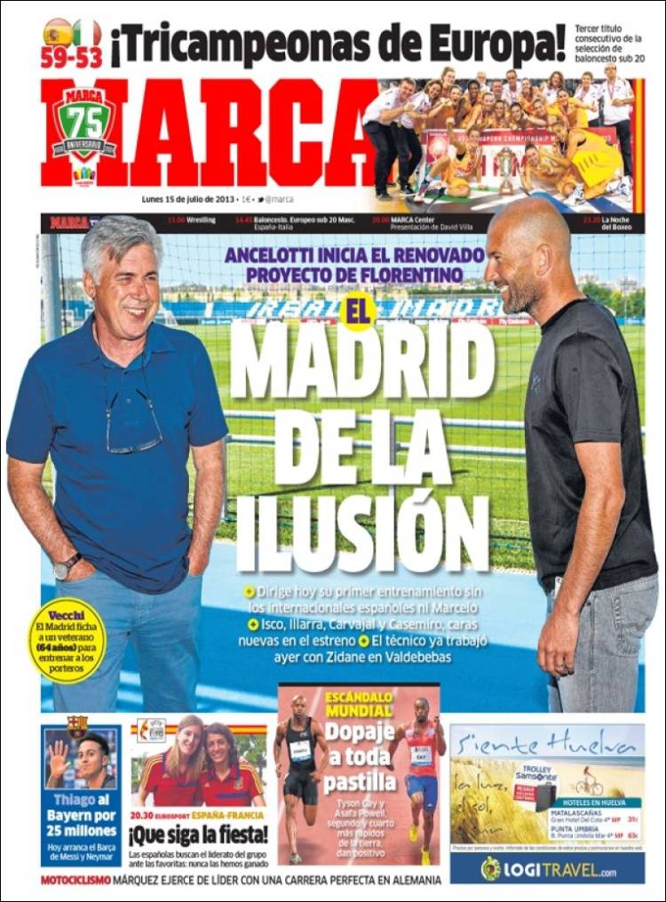 MARCA ANCELOTTI – Il quotidiano Marca parla del Real Madrid che si è allenato per la prima volta sotto la guida di Carlo Ancelotti.