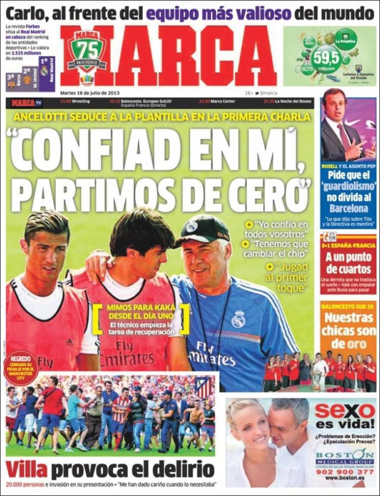 MARCA ANCELOTTI – Primi discorsi di Carlo Ancelotti al Real Madrid. Il tecnico ha chiesto ai giocatori di credere in lui.