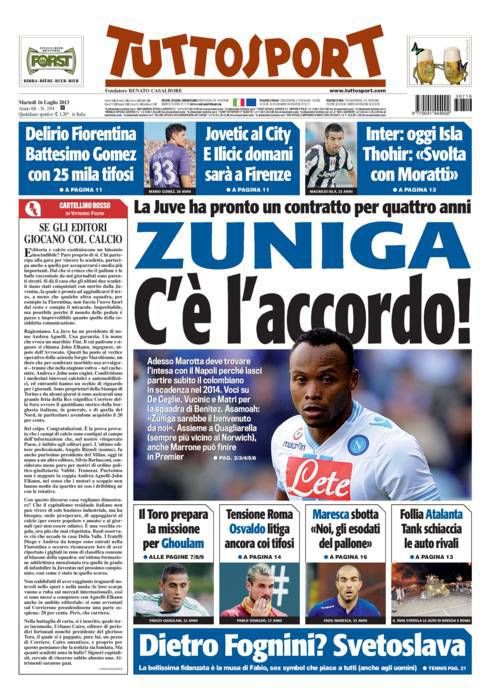 TUTTOSPORT ZUNIGA – Su Tuttosport si parla di Zuniga che ha trovato l’accordo con la Juventus.
