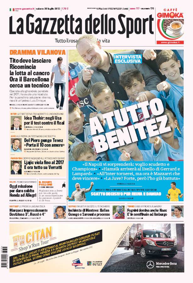 GAZZETTA BENITEZ – Sulla Gazzetta dello Sport intervista esclusiva a Rafa Benitez tecnico del Napoli.